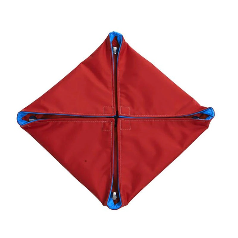 Square task with pockets for treats. Each corner is folded towards the centre and closed with Velcro. The task is attached to the mat with 4 press studs.
