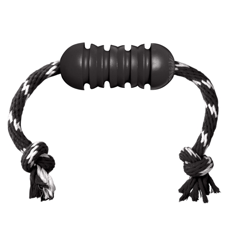 The KONG Extreme Dental Toy with Rope is designed for cleaning teeth and gums while giving an appropriate chewing outlet and supporting a dog’s instinctual needs. Made out of KONG Extreme Rubber formula, the KONG Dental toy has grooves that help clean teeth.